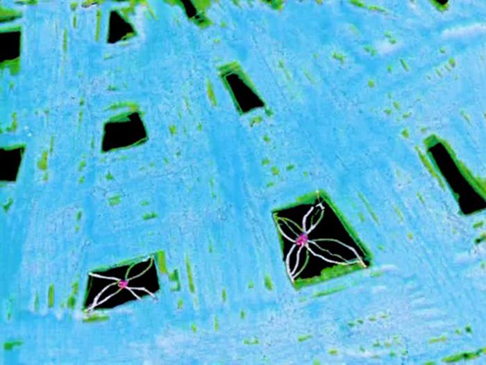 Metamorphosen von Mustern und geometrischen Basicsformen, die auf Schwarzfilm gekratzt wurden. Bild und Musik verändern ihre Position im Raum und im Zusammenhang und dem Ton/Musik ihre Bedeutung. Musik: verschiedene Trommeln und Trompete.